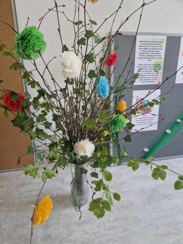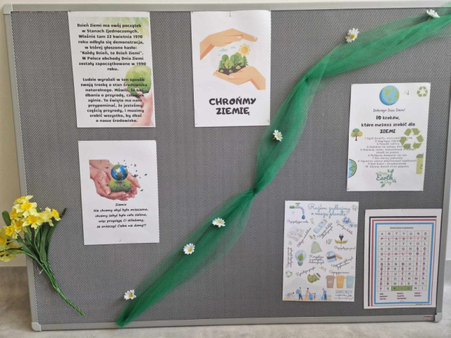 Z okazji Światowego Dnia Ziemi nasze Seniorki postanowiły przygotować gazetkę upamiętniającą to ważne wydarzenie. Oprócz kreatywnie wykonanej tablicy informacyjnej Panie przygotowały również kompozycje kwiatową, która swoją tematyką nawiązuje do darów Ziemi. ![]()