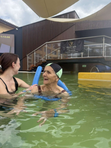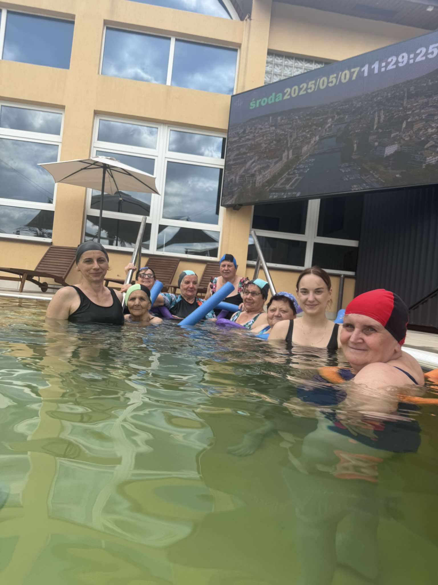 Naszym podopiecznym uśmiechy nie schodziły z twarzy, gdy pluskali się w basenie. Obiekt z którego skorzystali Seniorzy jest odkryty i dostępny cały rok. Wypełniająca go woda jest wydobywana z podziemnych złóż geotermalnych i posiada charakterystyczny zapach siarki. – Jest to pierwszy w Polsce obiekt całoroczny z wodą mineralno-siarkową. ![]()