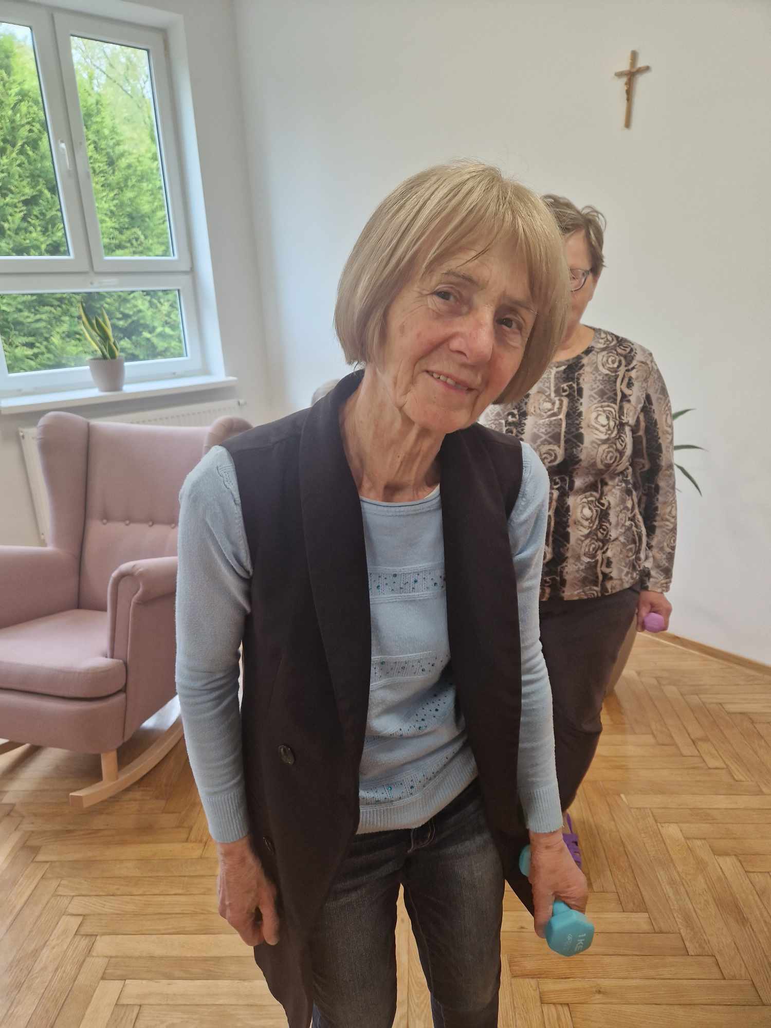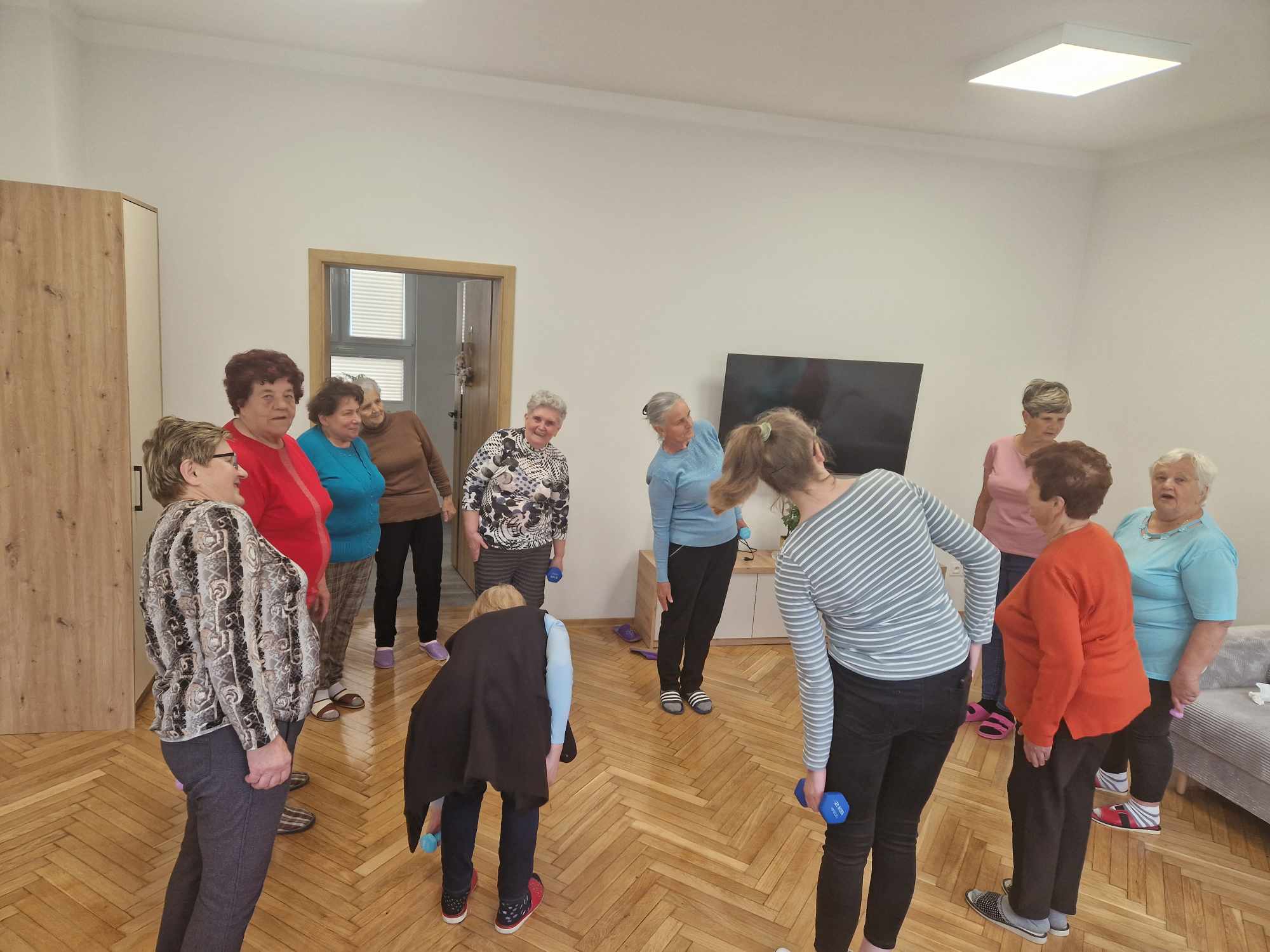 Zdrowe ciało wymaga od nas systematycznej aktywności fizycznej. Wiedzą o tym nasze Seniorki, które wykonywały dzisiaj ćwiczenia ruchowe z obciążeniem. ![]()